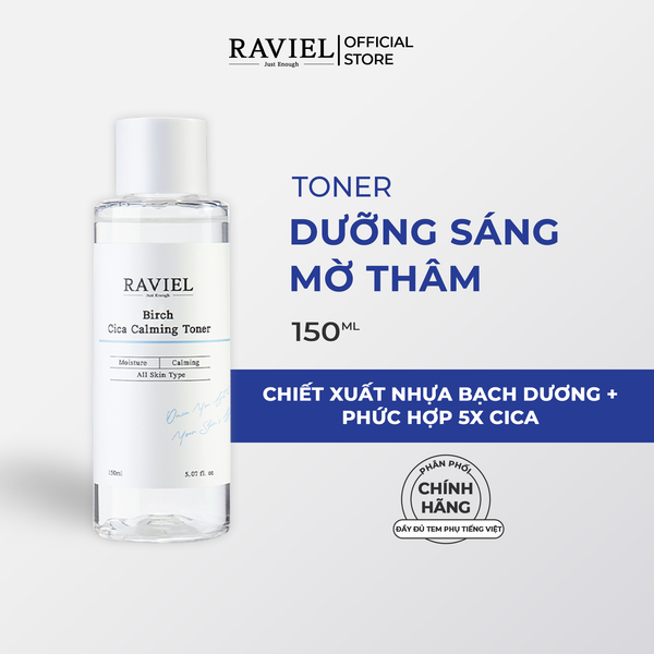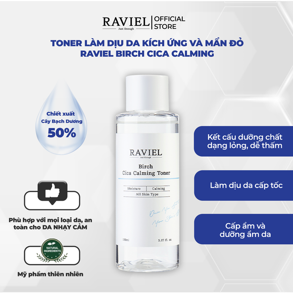 Nước hoa hồng làm dịu da kích ứng, mẩn đỏ Raviel Birch Cica Calming Toner 150 ml
