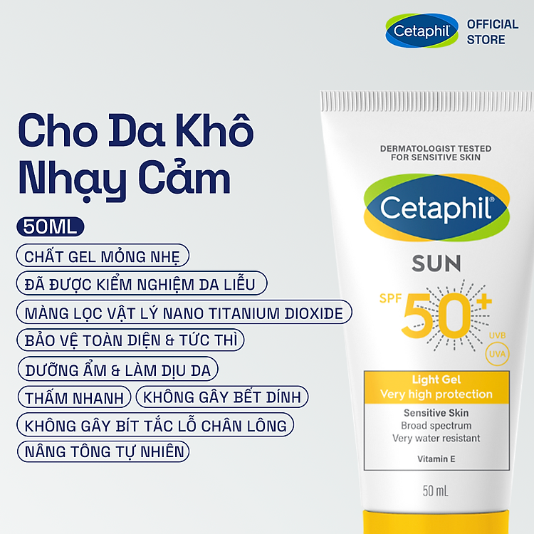 Specification: Combo 3 Bước Cetaphil Chăm Da Dịu Lành: Sữa rửa mặt 500ML + Kem dưỡng ẩm 50G + Gel chống nắng SPF50+